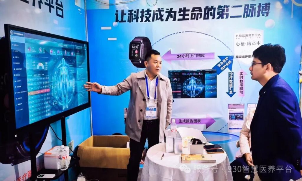 在老博会的 930 智慧医养平台展位上,工作人员为参观者佩戴上智能手环,实时展示他们的健康数据,并详细讲解了数据的分析和应用方法。许多参观者对这种便捷、准确的健康监测方式表示赞赏,认为它可以让老年人随时随地了解自己的身体状况,及时发现潜在的健康问题。